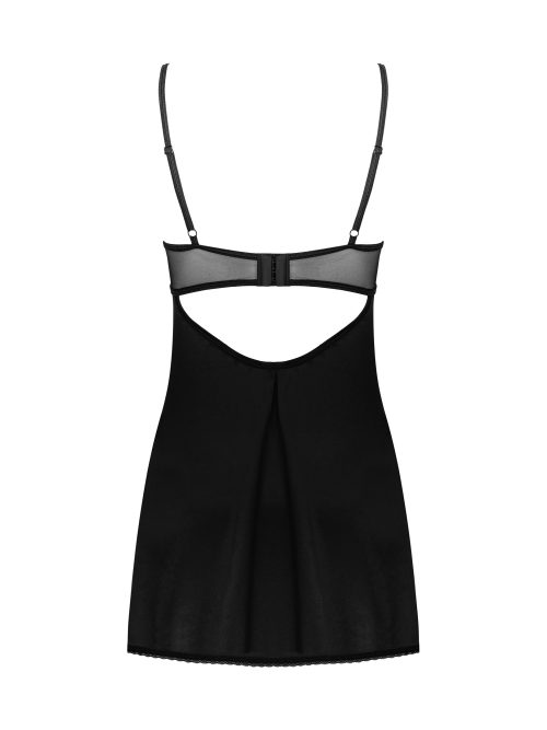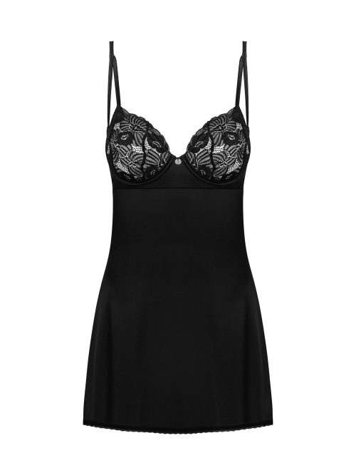 Plus size Obsessive Serena Love satin chemise and thong Black