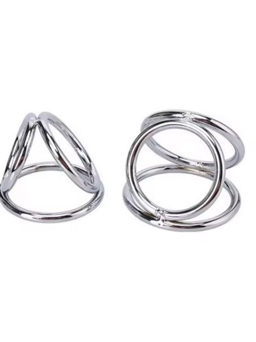 Naughty Toys Chrome triple Cock Ring with Ball Divider