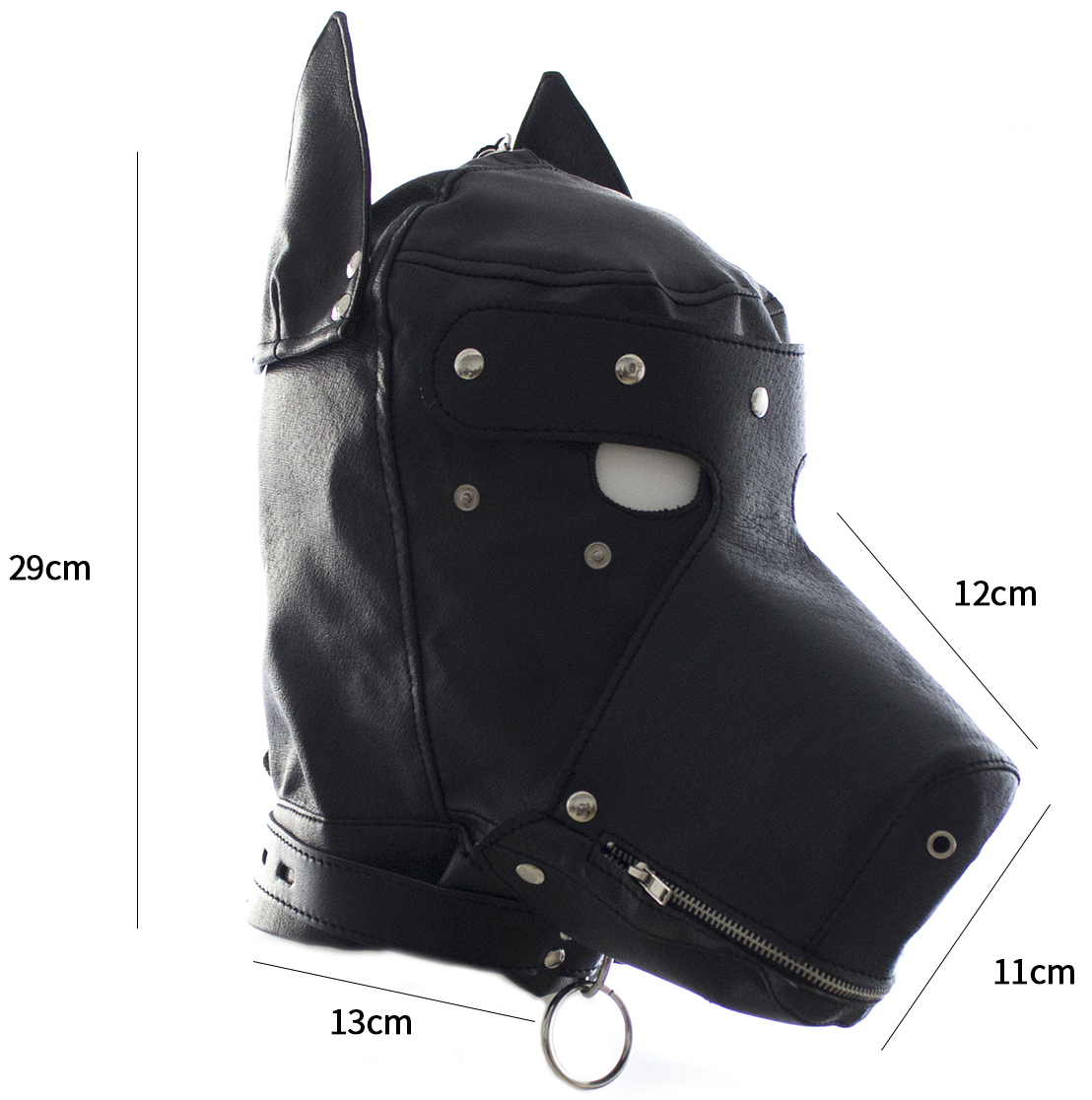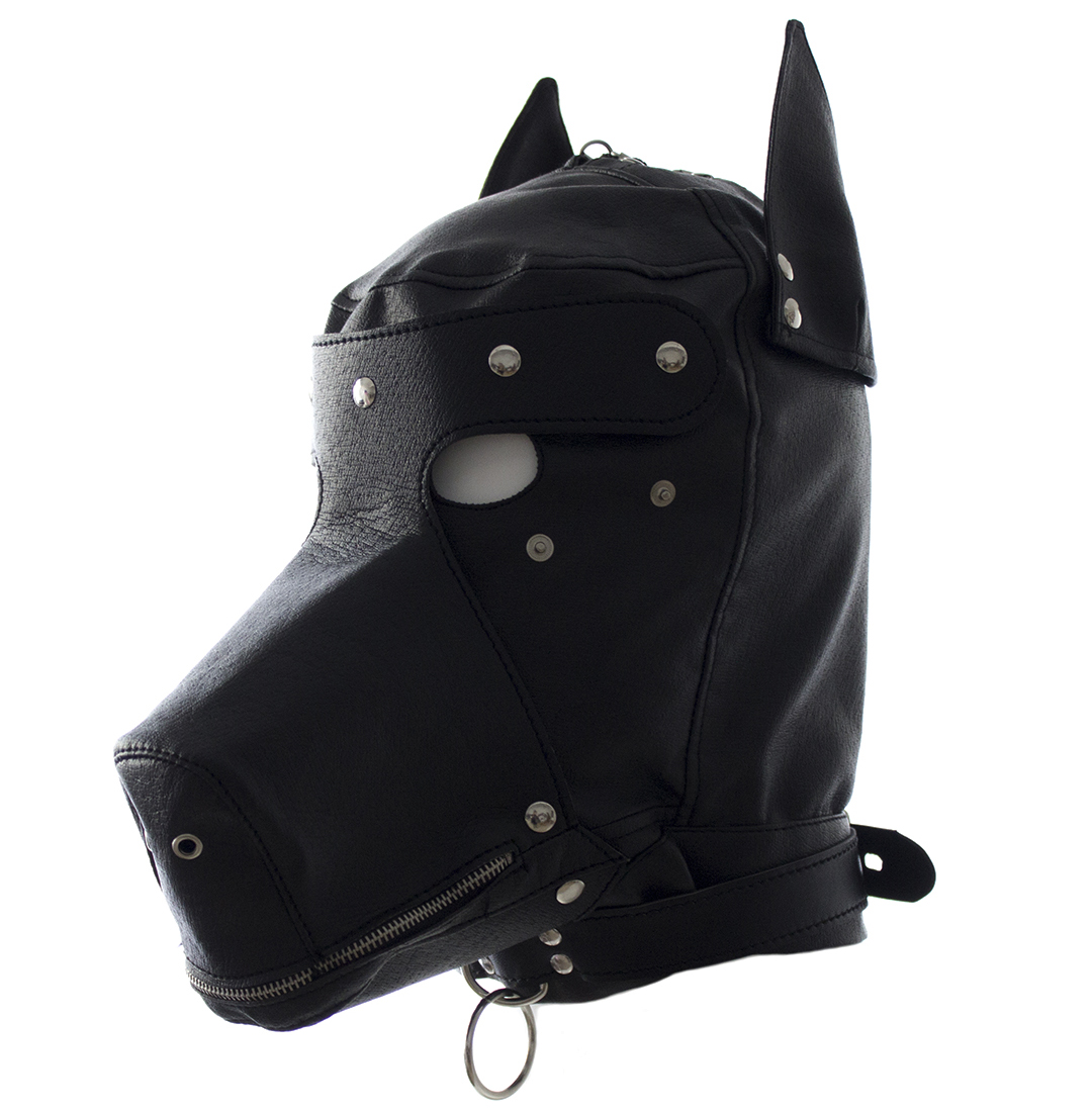 Have you got a misbehaving Puppy at home? This is a Naughty Toys Bondage role play, Dog's head hood, full face mask. Made of PU leather, this dog hood features a muzzle, ears, and a blindfold (that can be removed when required). The muzzle has a zipper mouth, so you could use your partner's mouth for whatever you desire.