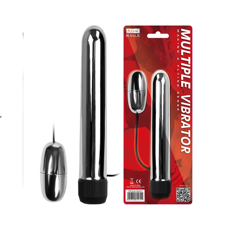 BAILE BI-006031 Ultimate multiple silver combination of a slim classic vibrator with a egg-bullet vibrator. Both, vibrator and bullet-egg, work together to please internally and externally the most demanding women ever. This is not a waterproof or splash proof vibrator. Combine only with water-based lubricants. After each use, please take the batteries out.