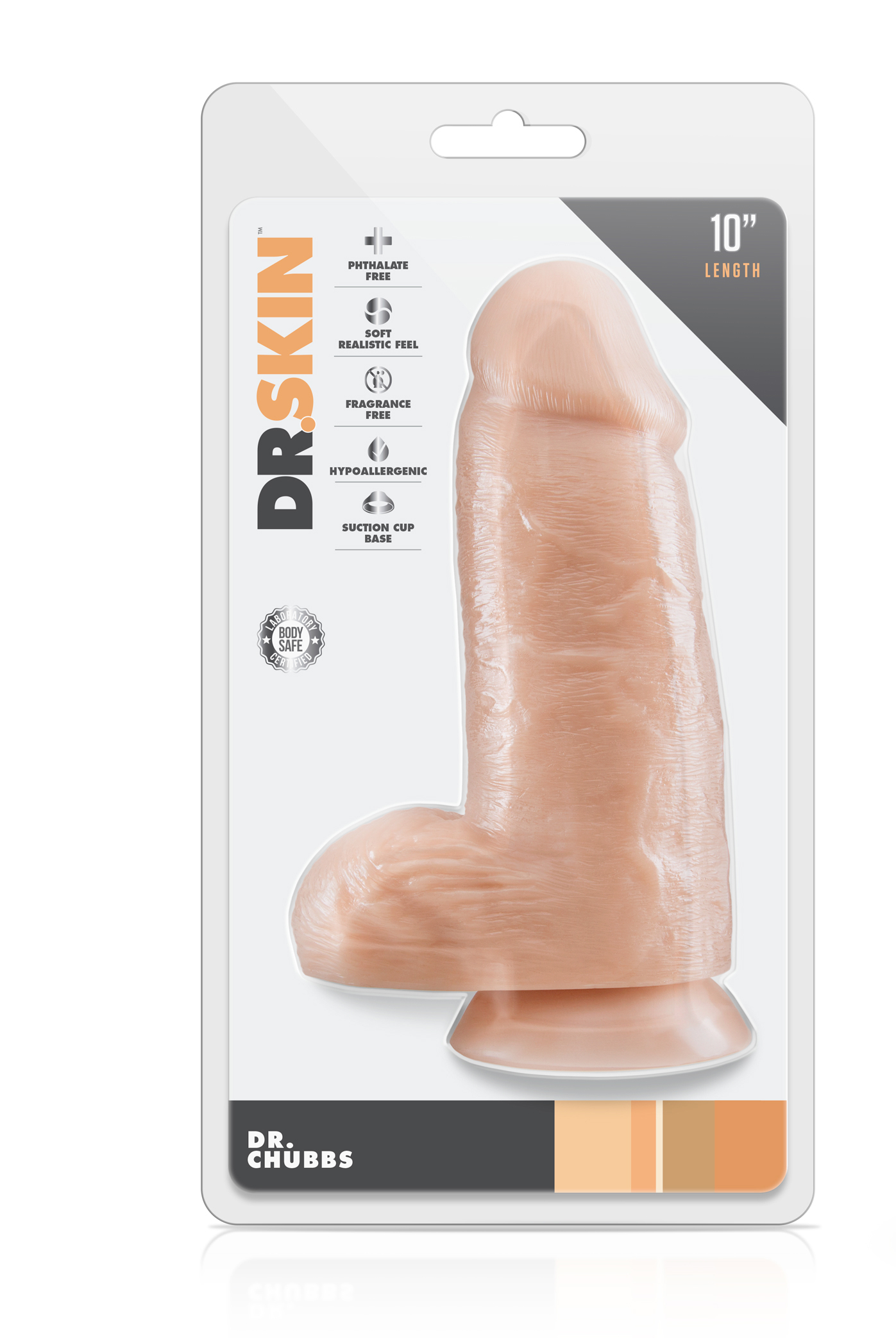 Stretch your sexual limits with this Large in diameter for advanced play, DR. SKIN DR. CHUBBS BL-15483 VANILLA. This realistic fleshwhite dildo with balls and suction cup base is here to exband your intimate moments! The Dr. Skin Dr. Chubbs offers you new levels of girth. With 8,2 cm (3.25 inches) of width and 17 cm (6.75 inches) of insertable length, Dr. Chubbs is ideal for anyone who wants to feel stretched to their limits. It delivers a soft, realistic feel and likelife texture for a better-than-real experience. Stick this toy on any smooth, flat surface to take advantage of its strong suction cup. Dr. Chubbs lab-tested non-porous PVC is body safe and easy to clean: just wash with gentle soap and water, then let air-dry.