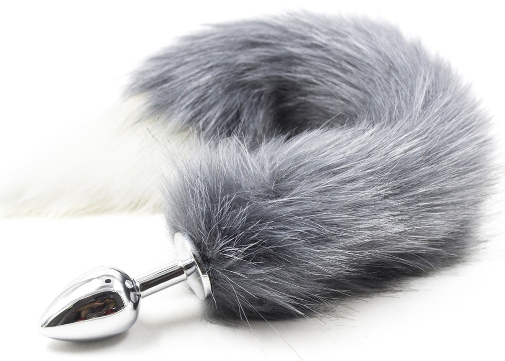 Naughty Toys, synthetic GREY with white tipped, faux fox fur tail with LARGE (9 Χ Ø 4 cm) butt plug is a must-to-have for every roleplaying lover. Chase the fox! Ideal for advance Male or female anal players. Wear this to a kinky party or at home while serving your master. Chase the little fox. It s your fantasy!