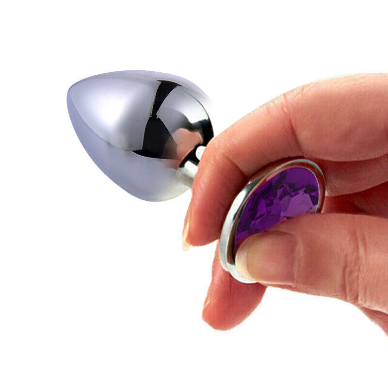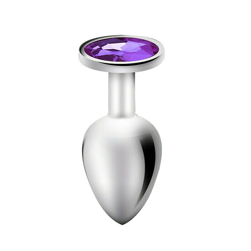 Large aluminum anal plug Sex Toy for women and men, purple jeweled by NAUGHTY TOYS. ADVANCED ANAL LOVERS BEST CHOICE METAL BUTT PLUG WITH SPARKLING GEM. The largest (Ø 4 cm) metallic jeweled plug. Defenetely, designed for fetish roleplay bedroom games. Now, available in Cyprus, to colourly spice up your backdoor pleasure moments. This magnificent highly polished, quality light weight aluminum butt plug comes with a shiny Deep Purple diamond at the end. Cypriot women and men love this Anal-play toy which has been en vogue for some time now; with butt plugs like this, it really is becoming fashionable.