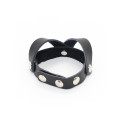Black leather cock-ring with V shape ball separator. Isolating each ball, fully adjustable to fit all men.Use it for harder and prolonged sex. It only takes a few seconds to put on. From now on, your partner will be pleasantly surprised by your performance.