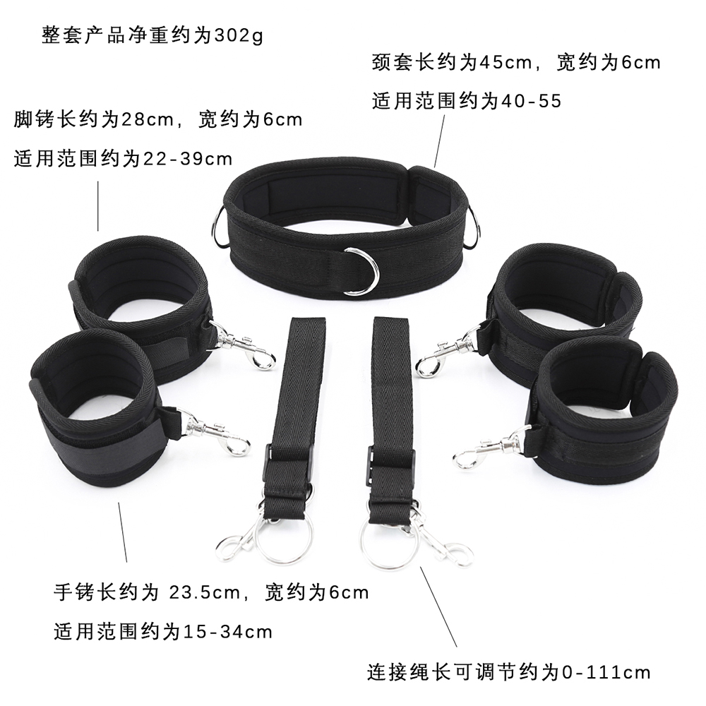 Each part of the restraint kit is adjustable, easy to adjust its length and tightness for neck, ankle and wrists, suitable for you and your lover perfectly.