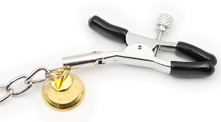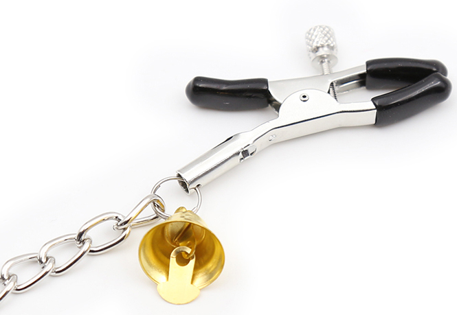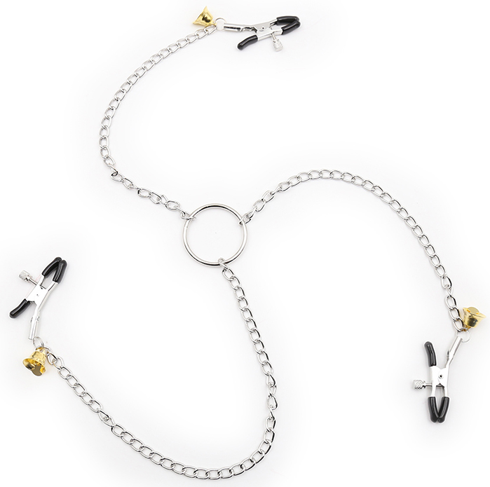 Naughty Toys Nipple Clamps and Clit Clamp with metal Chain and golden bells. A line designed for bdsm lovers of the most intense and dark pleasures, delve into Naughty Toys Fetish Addict and enjoy your sexuality like never before.