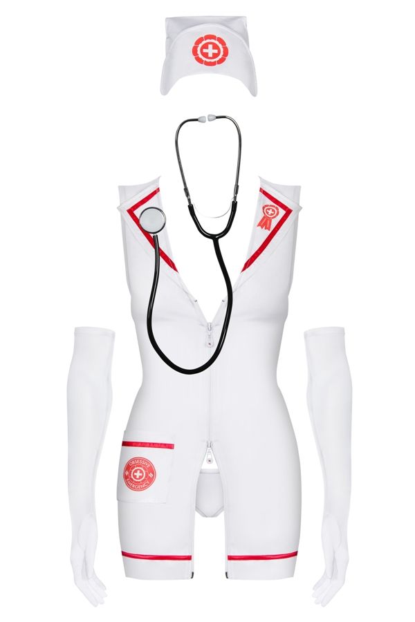 Sexy emergency aid nurse costume, perfect for those looking to spice up their love life with a bit of roleplay fun! Dress up and check his heartbeat with a real stethoscope!
