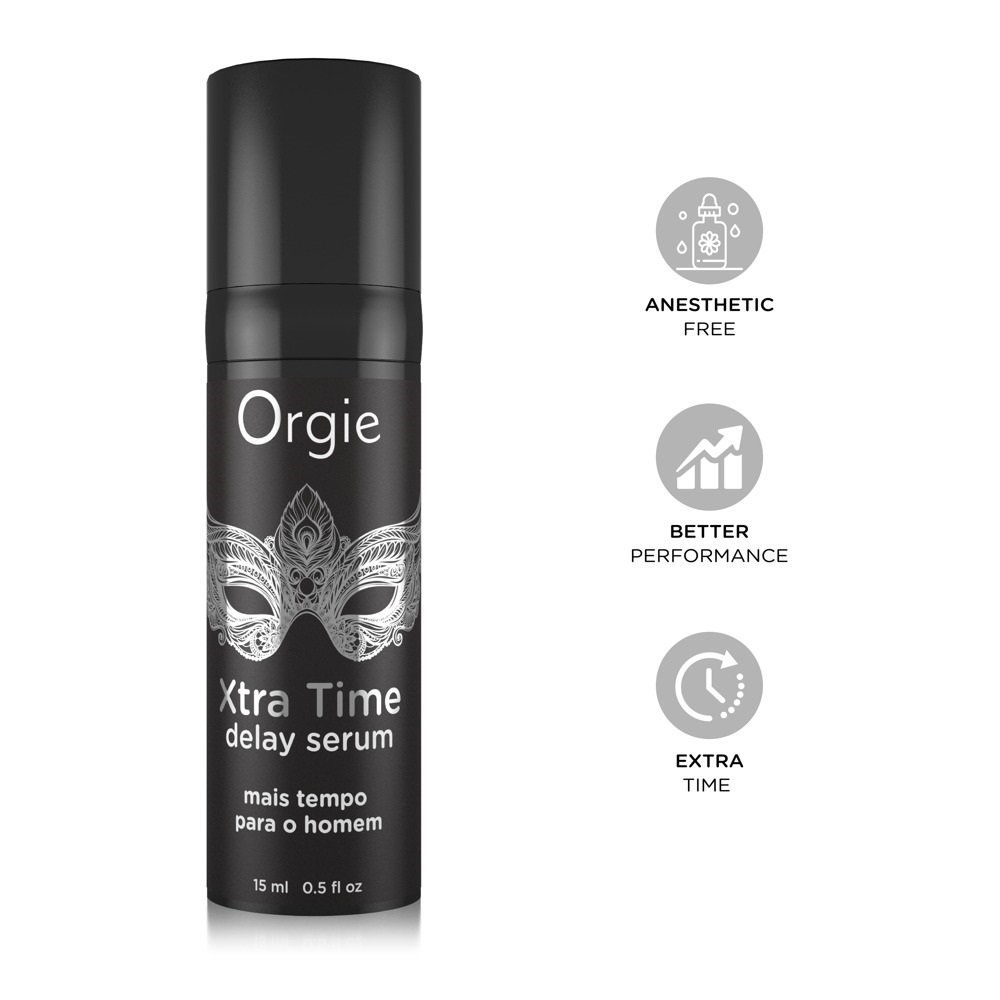 More time for the man! The Xtra Time Delay Serum by Orgie reduces the sensitivity of the penis and minimises the feeling of friction for long-lasting arousal and pleasure during sex. The smooth formula with high-quality silicone forms a fine film on the penis and thus reduces sensitivity. Simply apply just before intercourse (and again if needed). This product is not a substitute for condoms.