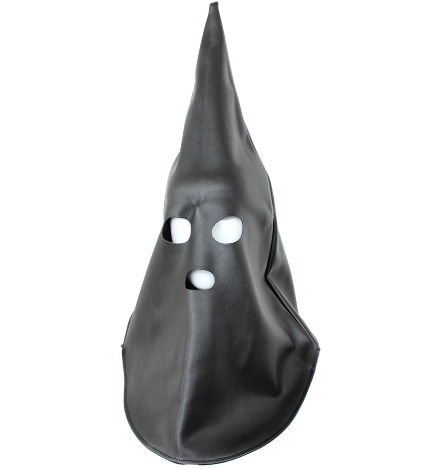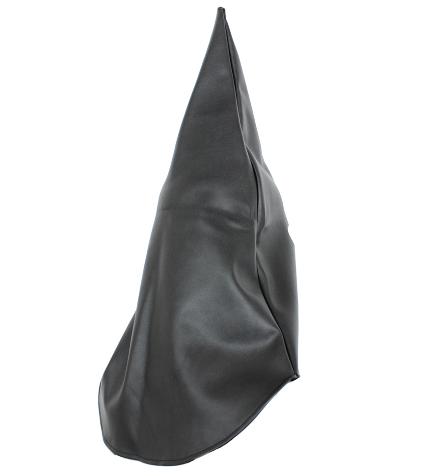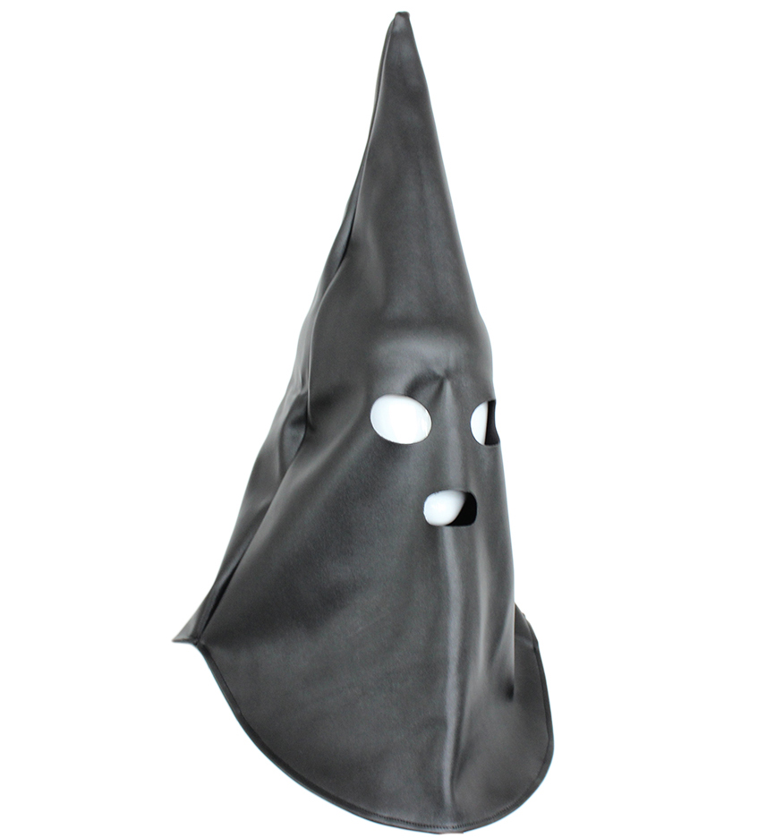 Create fear and creepy atmosphere with Wizard's Bondage Hood with eyes and mouth openings. High quality full head cover, leather Hood mask with mouth, eyes openings by Naughty Toys. For more information, please refer to the product's full page description, down below. One size. FAUX PVC LEATHER