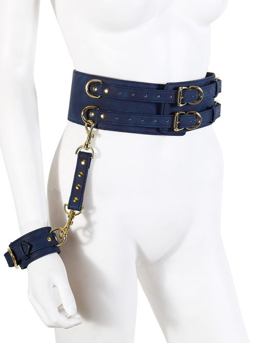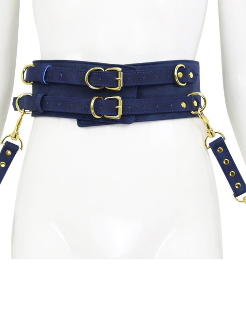 NAUGHTY TOYS BLUE GOLD leather corset cuffs restraints 2pcs set