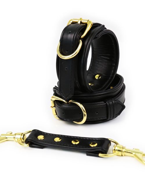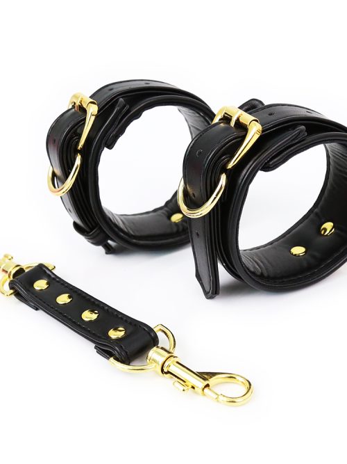 NAUGHTY TOYS Black with Gold snap-hook leather Ankle cuffs