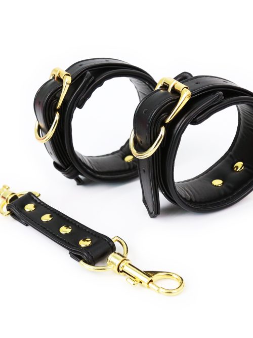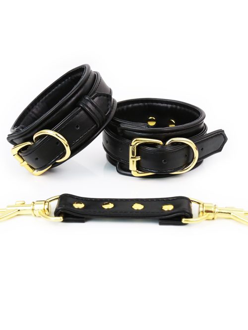 NAUGHTY TOYS luxury black and Gold leather handcuffs