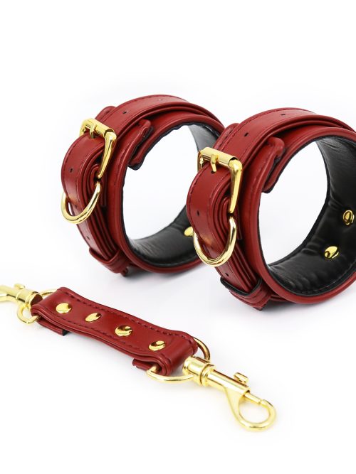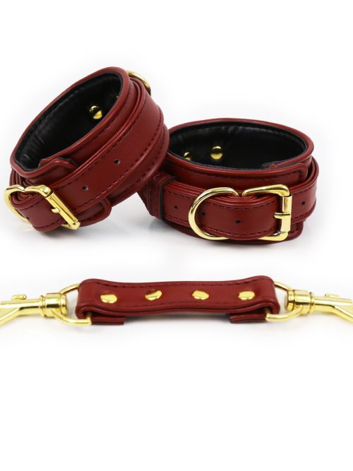 NAUGHTY TOYS luxury wine red and Gold snap-hook leather handcuffs