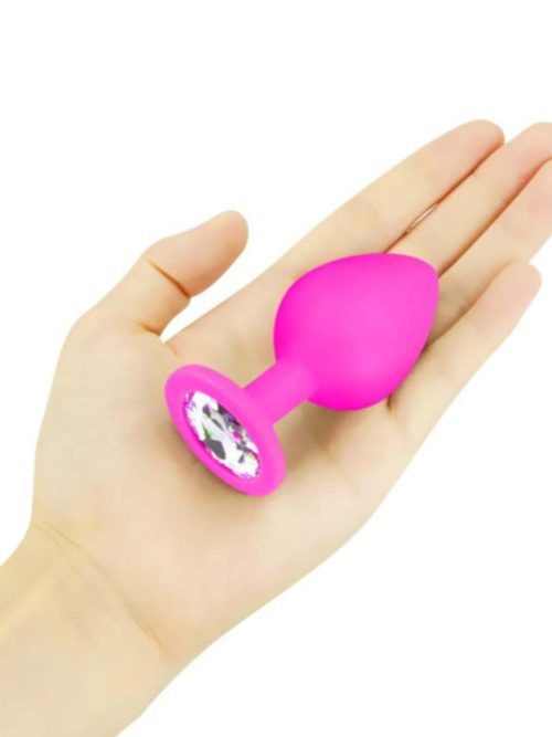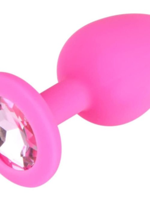 Μικρή ΡΟΖ Πρωκτική Σφήνα σιλικόνης με διαφανές κρυστάλλινο πετράδι